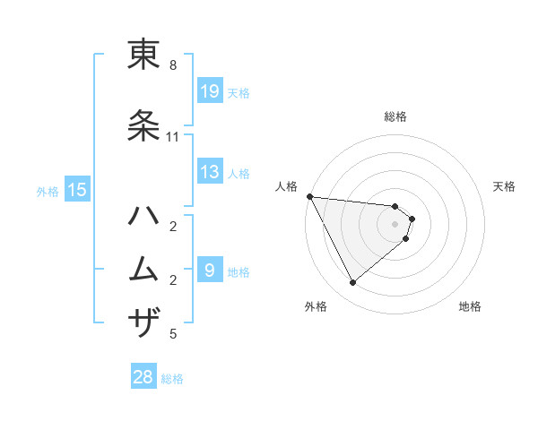 東条 ハムザさんを姓名の画数から五運を鑑定