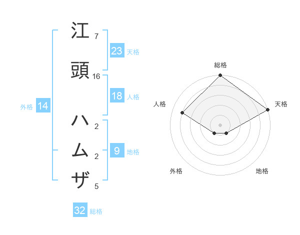 江頭 ハムザさんの総格は32画の5点!