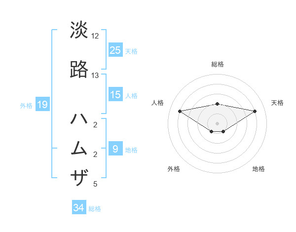 淡路 ハムザさんを姓名の画数から五運を鑑定