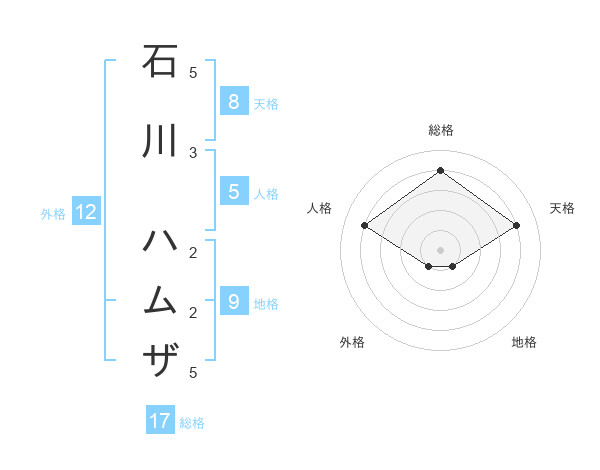 石川 ハムザさんを姓名の画数から五運を鑑定