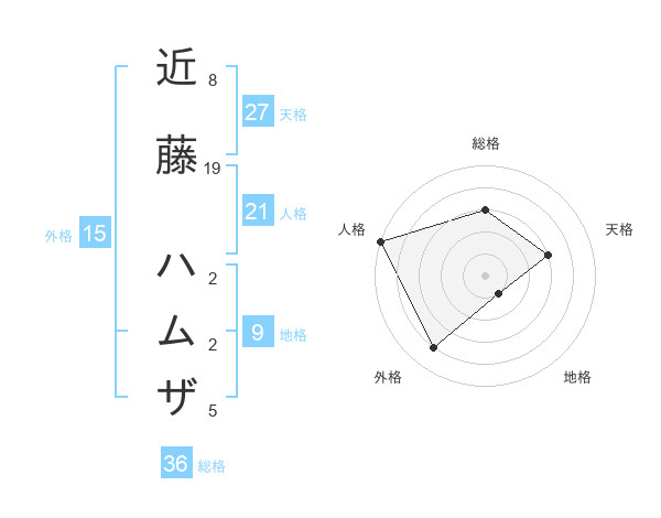 近藤 ハムザさんを姓名の画数から五運を鑑定