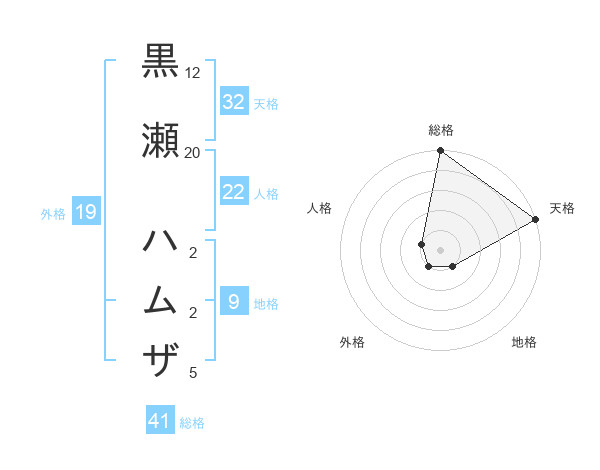 黒瀬 ハムザさんを姓名の画数から五運を鑑定