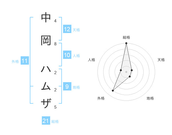 中岡 ハムザさんを姓名の画数から五運を鑑定