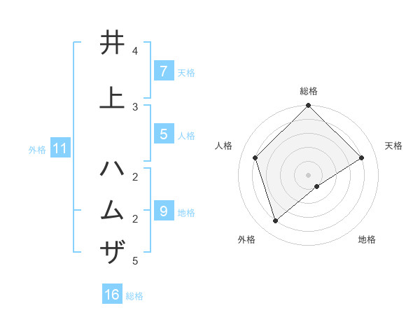 井上 ハムザさんを姓名の画数から五運を鑑定