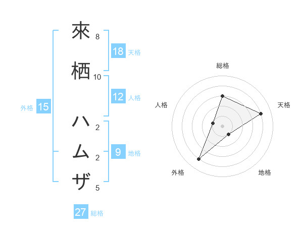 來栖 ハムザさんを姓名の画数から五運を鑑定