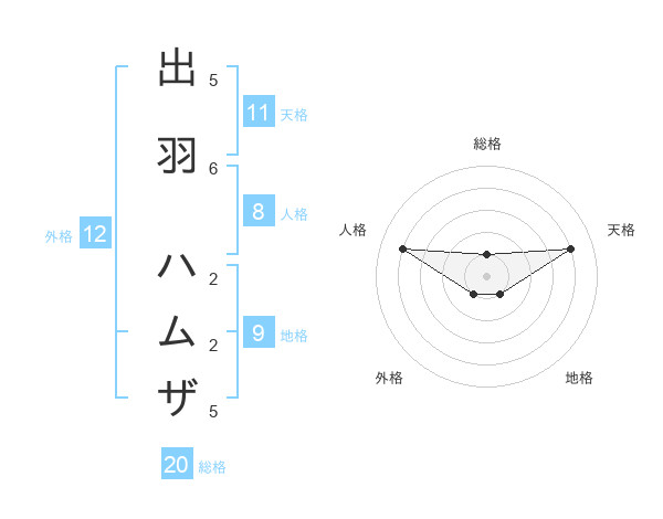 出羽 ハムザさんの総格は20画の1点!