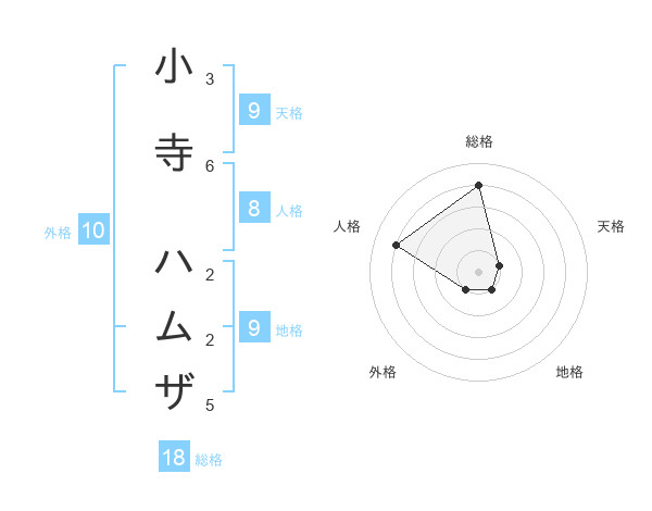 小寺 ハムザさんを姓名の画数から五運を鑑定