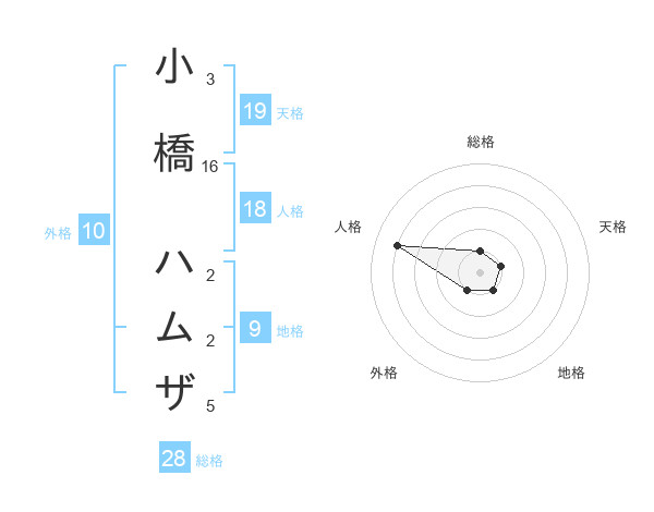 小橋 ハムザさんを姓名の画数から五運を鑑定