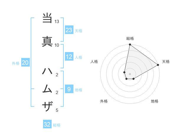 当真 ハムザさんの天格は23画の5点
