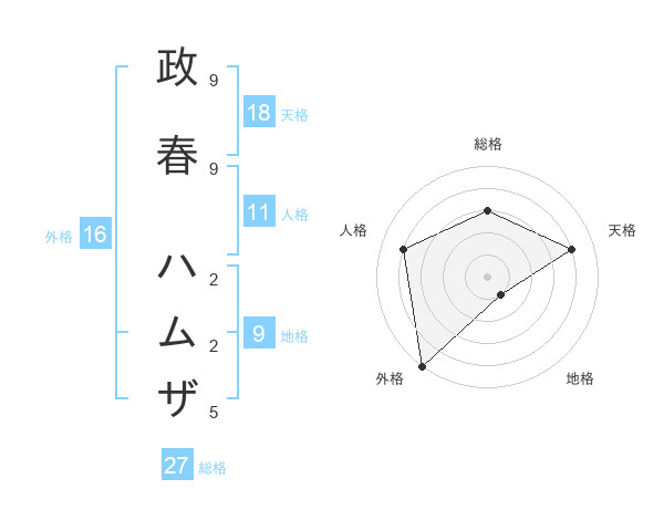 政春 ハムザさんを姓名の画数から五運を鑑定