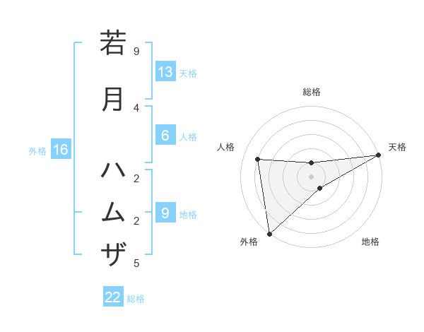 若月 ハムザさんの外格は16画の5点!