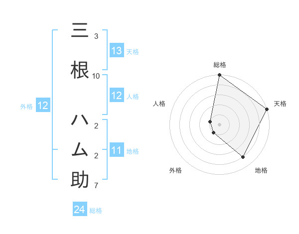 三根 ハム助さんを姓名の画数から五運を鑑定