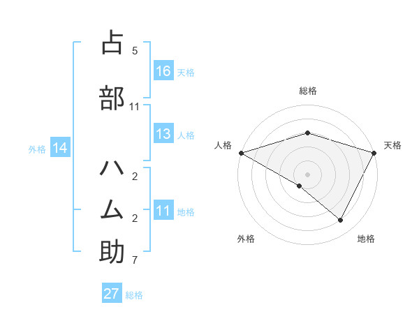 占部 ハム助さんの総格は27画の3点!