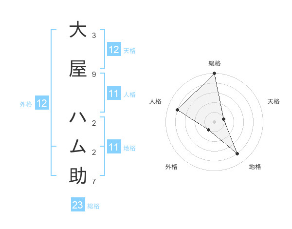 大屋 ハム助さんを姓名の画数から五運を鑑定