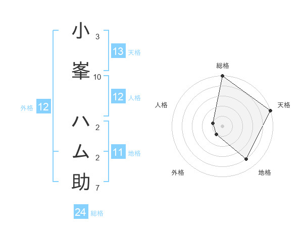 小峯 ハム助さんの天格は13画の5点!
