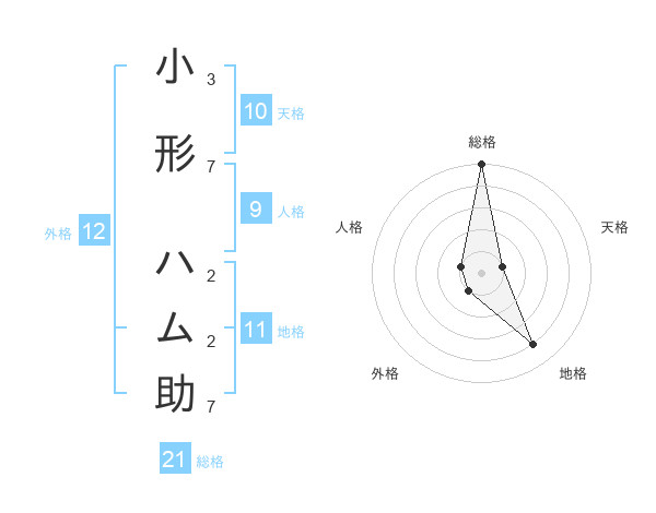 小形 ハム助さんの総格は21画の5点!