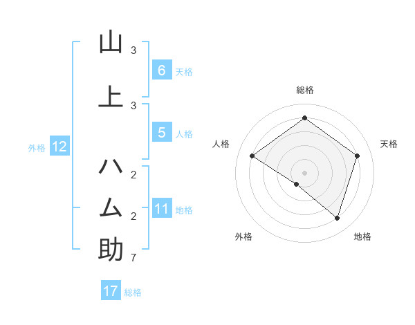 山上 ハム助さんを姓名の画数から五運を鑑定