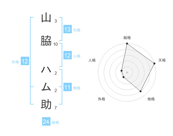 山脇 ハム助さんを姓名の画数から五運を鑑定