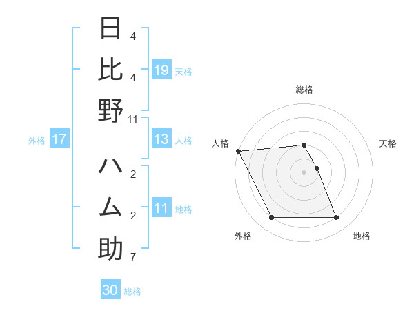 日比野 ハム助さんを姓名の画数から五運を鑑定