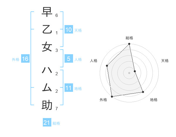 早乙女 ハム助さんを姓名の画数から五運を鑑定