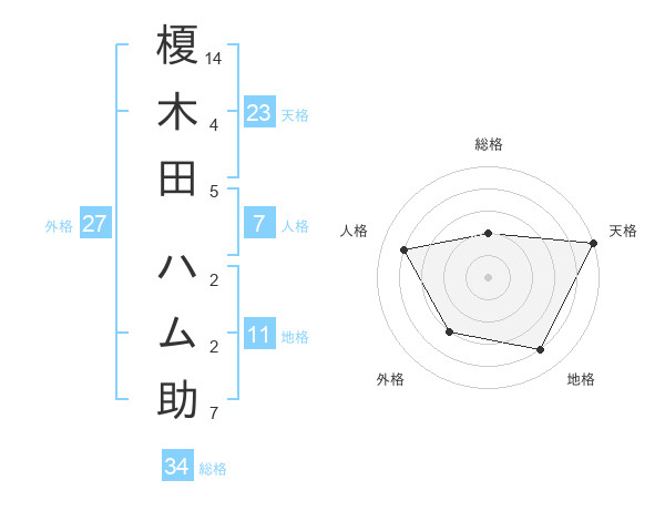 榎木田 ハム助さんを姓名の画数から五運を鑑定