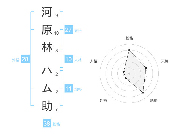 河原林 ハム助さんを姓名の画数から五運を鑑定