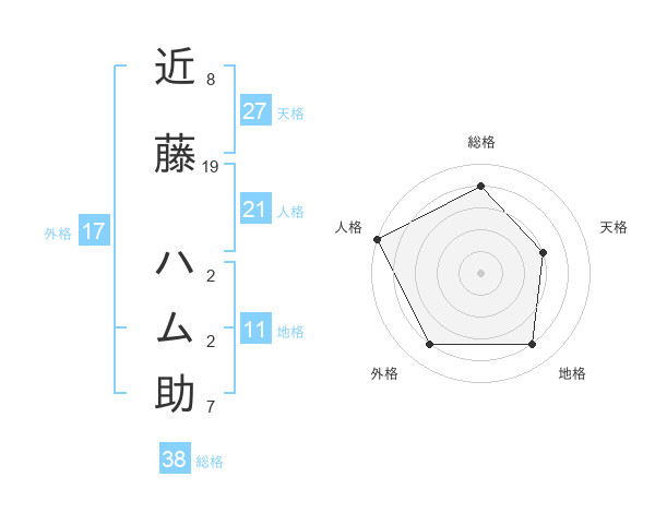 近藤 ハム助さんを姓名の画数から五運を鑑定