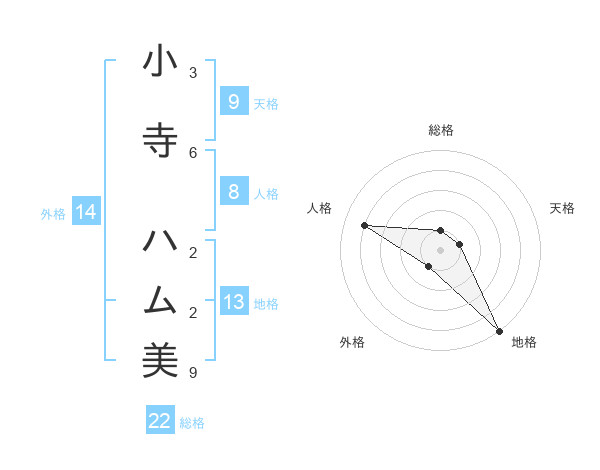 小寺 ハム美さんを姓名の画数から五運を鑑定