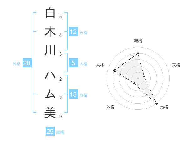 白木川 ハム美さんの総格は25画の4点!