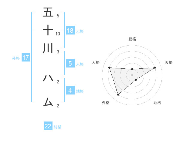 五十川 ハムさんを姓名の画数から五運を鑑定