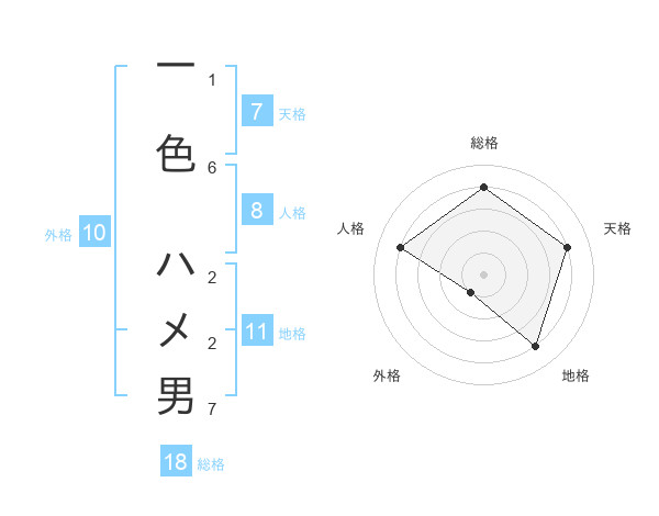 一色 ハメ男さんを姓名の画数から五運を鑑定