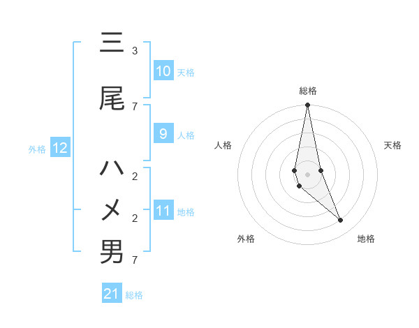 三尾 ハメ男さんの総格は21画の5点!