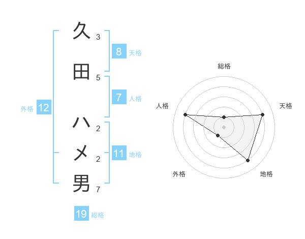 久田 ハメ男さんを姓名の画数から五運を鑑定