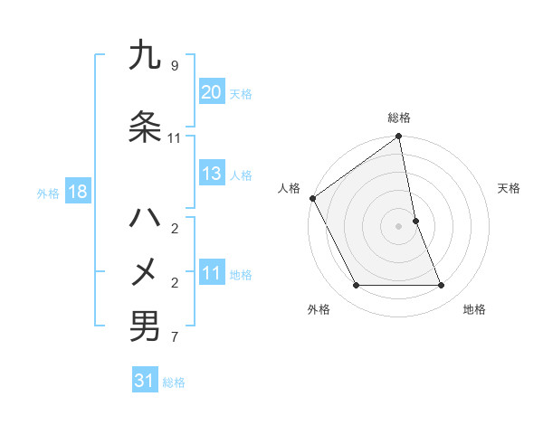 九条 ハメ男さんを姓名の画数から五運を鑑定