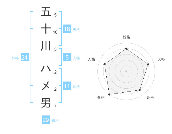 五十川 ハメ男さんの総格は29画の4点!