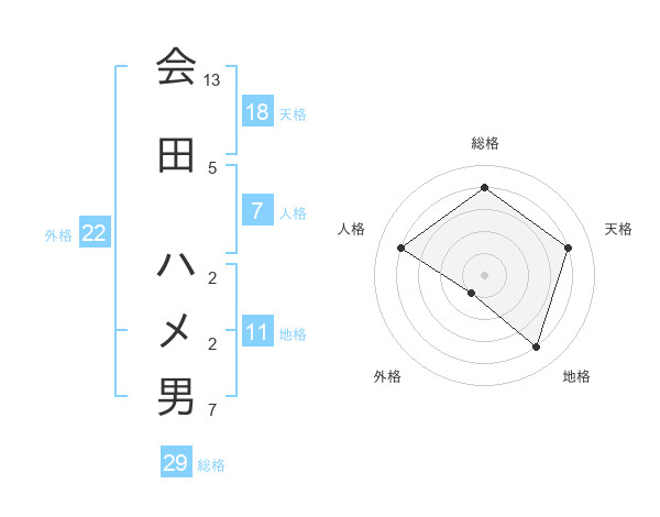 会田 ハメ男さんを姓名の画数から五運を鑑定