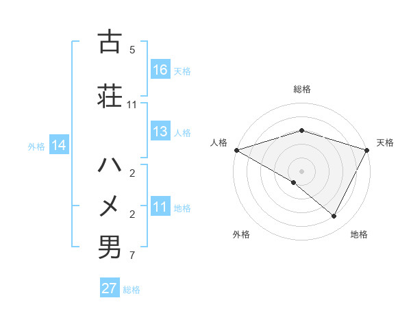 古荘 ハメ男さんを姓名の画数から五運を鑑定