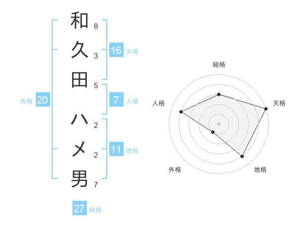和久田 ハメ男さんを姓名の画数から五運を鑑定