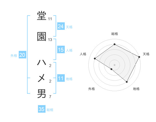 堂園 ハメ男さんの総格は35画の4点!