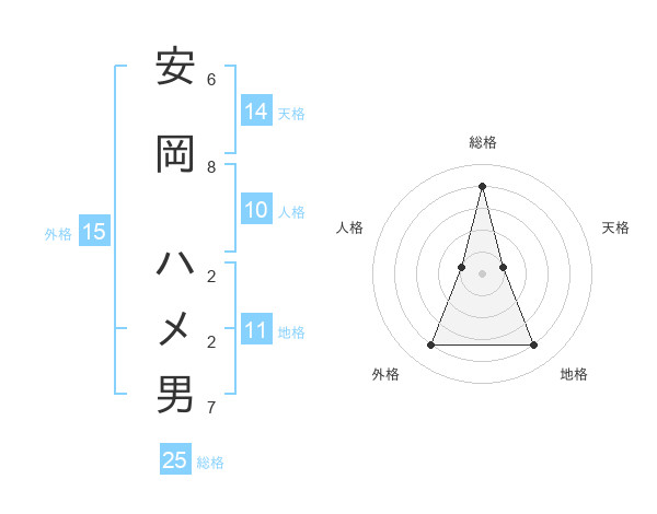 安岡 ハメ男さんを姓名の画数から五運を鑑定