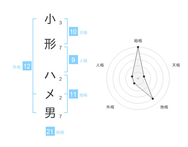 小形 ハメ男さんを姓名の画数から五運を鑑定