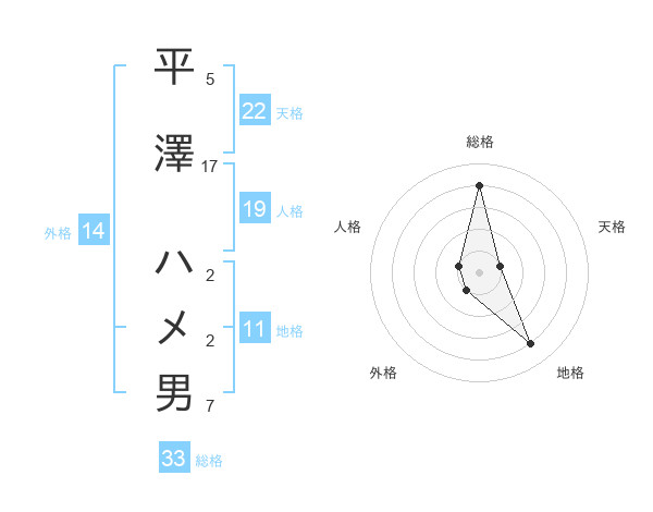 平澤 ハメ男さんを姓名の画数から五運を鑑定