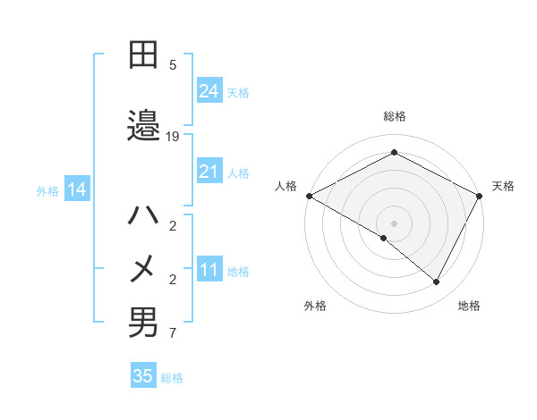 田邉 ハメ男さんの総格は35画の4点!