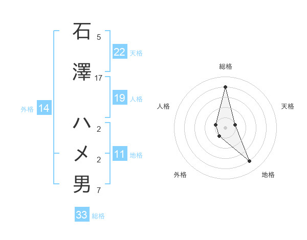 石澤 ハメ男さんを姓名の画数から五運を鑑定