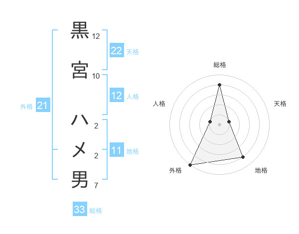 黒宮 ハメ男さんを姓名の画数から五運を鑑定
