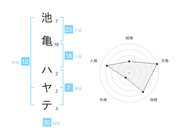 池亀 ハヤテさんを姓名の画数から五運を鑑定