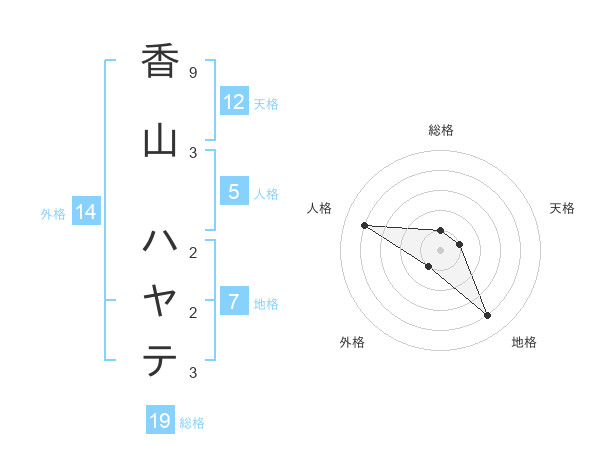 香山 ハヤテさんを姓名の画数から五運を鑑定