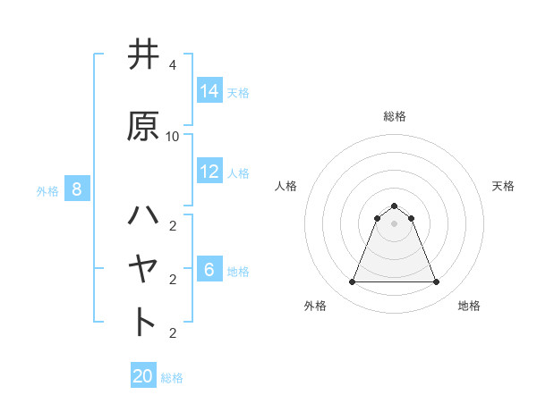 井原 ハヤトさんを姓名の画数から五運を鑑定