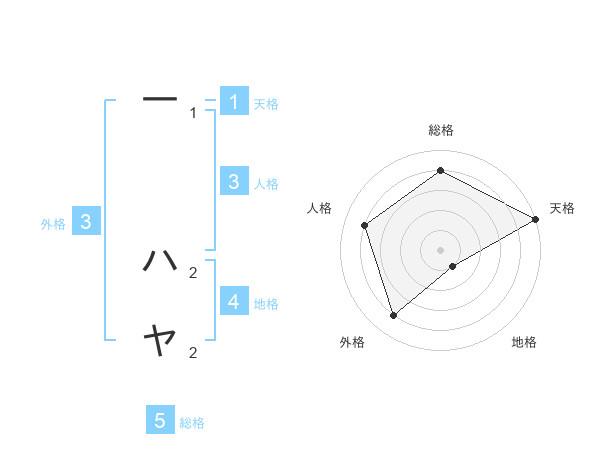 一 ハヤさんの天格は1画の5点!