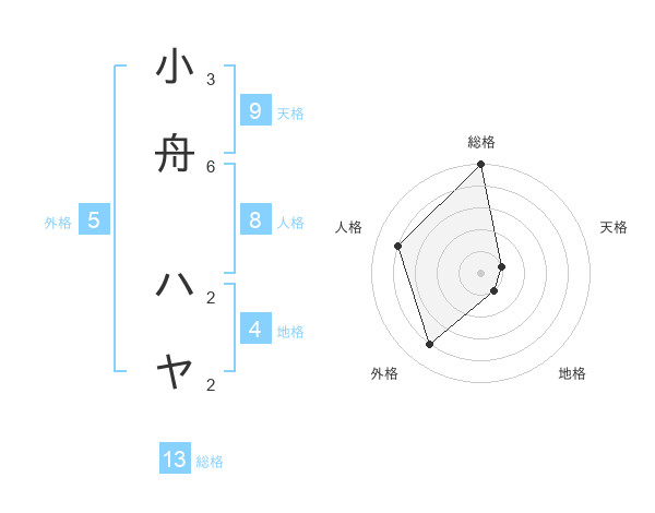 小舟 ハヤさんの総格は13画の5点!